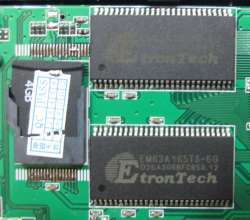 拆開背面螺絲就可以看到背面主板 3.7V 1800mA電池 Ingenic JZ4755 CPU 4GB Flash Memory、EtronTech EM63A165TS-6G UART TX/RX、EM78F664N 5807P E9029 LCD型號
