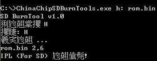 4. 輸入:ChinaChipSDBurnTools.exe x: rom.bin指令(x:就是MiniSD的磁碟位置)