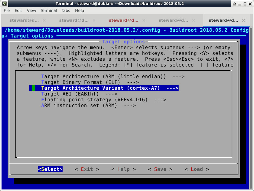 $ cd $ wget https://buildroot.org/downloads/buildroot-2018.05.2.tar.gz $ tar vxf buildroot-2018.05.2.tar.gz $ cd buildroot-2018.05.2 $ make menuconfig