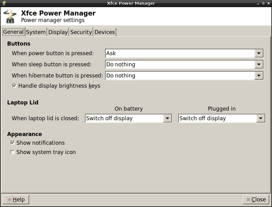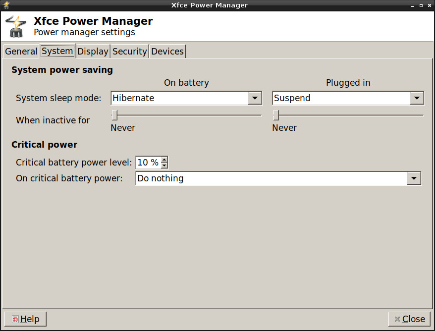 $ sudo apt-get install xfce4-power-manager $ sudo xfce4-power-manager-settings