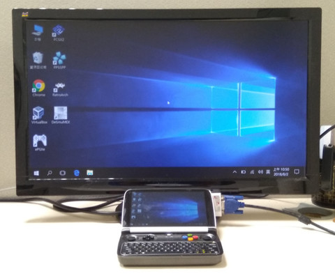 基本上,以目前GPD Win2的規格來看,絕對適合當作一台小型筆電使用,因此,司徒目前使用這台小掌機,當作每天上班使用的輔助電腦,而剛好GPD Win2的輸出是Micro HDMI,因此,司徒就買一條Micro HDMI轉VGA的傳輸線,如下所示: 接著就可以輸出到一般的16:9螢幕使用使用(解析度可以達到1920x1080)
