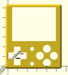 最先的構想是製作一台可以點對點的迷你FC掌機,而這樣的想法是來自QQ群的剃頭,雖然司徒一開始不想理他且一再拖延,不過,最終這個專案還是成行,於是司徒設定這台掌機的用途為超可攜、超高續航掌機,不過隨著時間流逝,目標越來越高遠,原本只是希望模擬FC遊戲,最後卻變成是跟丁果A320一樣的模擬效果,於是司徒開始找尋可用的核心板,最後選定使用MT7688模組(CPU 580MHz),因為價格相對低廉且CPU速度比丁果A320快一點,至於按鍵部分(DPad、4按鍵、Start、Select、L和R),則全部採用既有的NDSL按鍵,希望可以保有按鍵的手感(非整機手感),屏幕則是2.0吋 IPS ILI9325 320x240解析度,於是司徒使用開源的OpenSCAD,畫了一個迷你外殼的雛型: