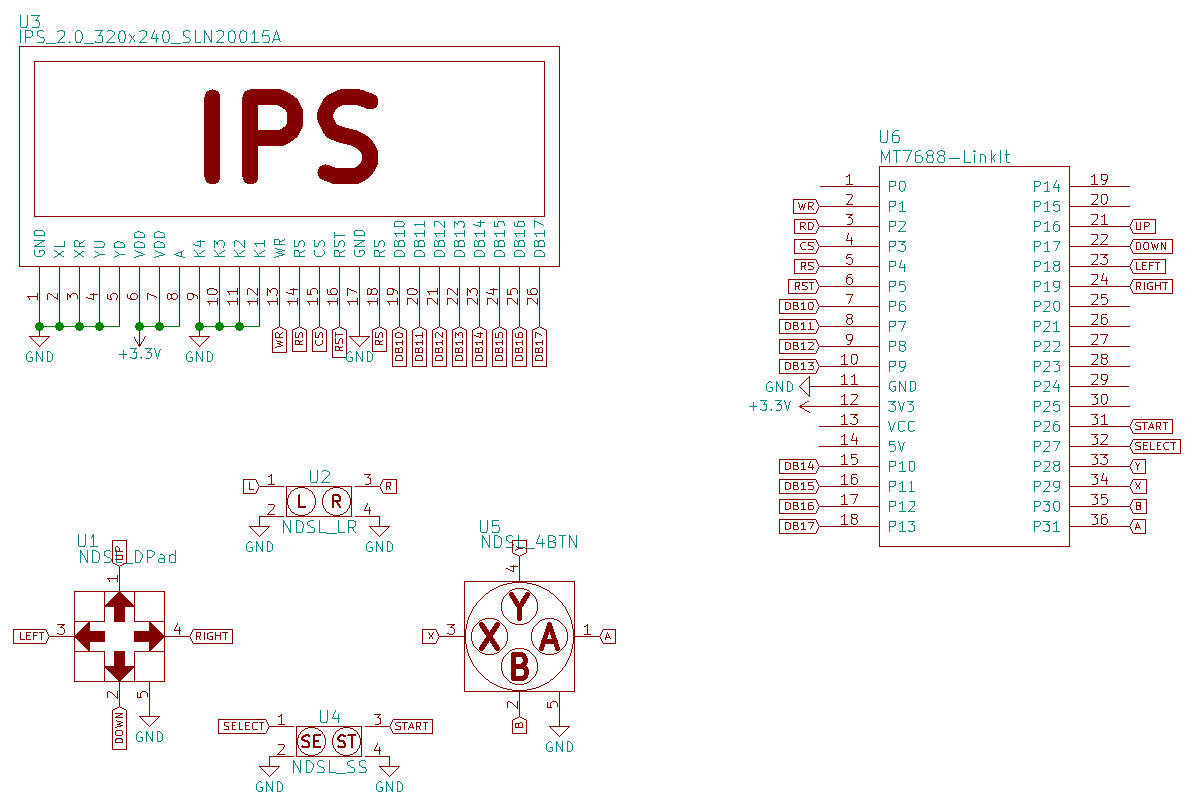 設計之初是使用MT7688全引腳的開發板,而相較於君正JZ4740,MT7688顯然不適合用於顯示相關的應用,因為缺少LCD或Smart LCD介面
