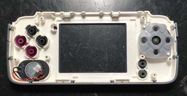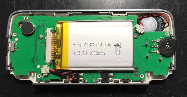 包裝盒 包裝 附贈的東西 屏幕越來越爛,左下角露光,下方有四條明顯露光的條紋 司徒換一張背景圖片測試,果真是屏幕問題 肉雞就定位 上方 側邊 下邊 側邊 背面 背蓋 終於使用正常的電池 前蓋 主要零件 F1C100S、LM4809 屏的型號是ST7789