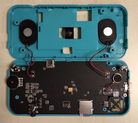 首先感謝霸王小子寄給司徒4台Q90掌機 密合度還算可以 電池 PCB背面 MicroSD PCB一側 另一側 提起時要注意排線 導電膠 PCB正面 Allwinner F1C100S 四顆按鍵 DPad PCB有設計誤觸,那個類比搖桿只是方向鍵的拉線 屏 24Pin A面