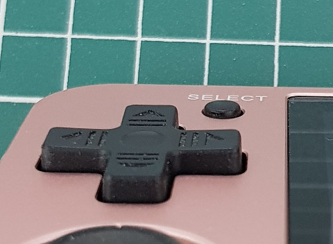 RG350和RG350M的DPAD RG350的START、SELECT按鍵比較下沉 原本START按鍵 原本SELECT按鍵 使用OpenSCAD畫了一個墊片 3D Printer列印 需要小修一下 替換後的DPAD 替換後的START 替換後的SELECT 完美的出招