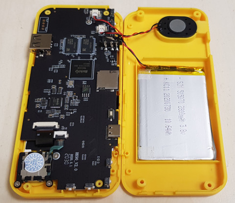 背面螺絲 注意喇叭跟電源排線 LR肩鍵使用軟膠墊 3.7v 2800mA K4B4G16、RK3326、XT25F128B、RK817 Joystick UART 容易崩牙 PCB背面 A面 4顆按鍵 十字鍵 容易落塵 司徒還是習慣拔掉保護玻璃 XF035DIC20-SH01-J1