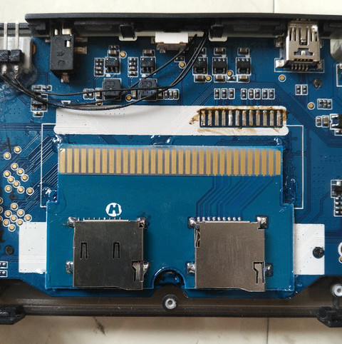 由於原廠的電池容量真的太小,導致玩遊戲的時間真的相當緊湊,一旦有了這樣的陰影,司徒便會時時觀察電池剩餘電量,導致無法專心把玩遊戲,雖然司徒玩遊戲的時間已經相當有限,但是還是希望至少可以有8小時的電力,這樣才不會讓自己處於煩惱的狀態,因此,司徒決定對RS97動刀,改造一個外殼可以容下的最大電池容量,但是最大問題在於那個GBA卡槽,因為卡在中間,變成只能左右各安裝一顆小電池,這樣的改造就有點可惜,因為浪費了一些空間,因此,司徒決定把GBA卡槽移除,這樣就可以一次到位,改造一個最大的電池容量,因為那個GBA卡槽,本身只有提供SDCard接線功能,因此不需占用太大的空間,接著就分享一下司徒的改造過程