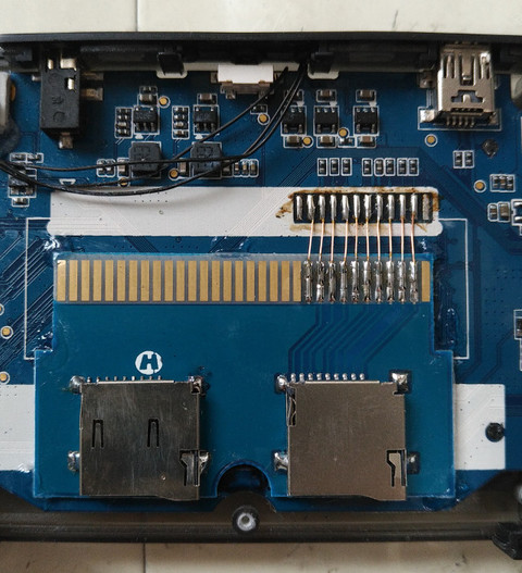 由於內部SDCard位於機殼裡面,而開發階段則是需要時常拔插,因此,司徒心想,乾脆兩張SDCard都外移好了,方便之後的開發之路,但是要從哪裡焊接這張SDCard呢?司徒發現在這張卡的附近有一些PCB測試點,因此正好可以拿來使用,只要使用三用電表測量就可以標出SDCard對應的腳位