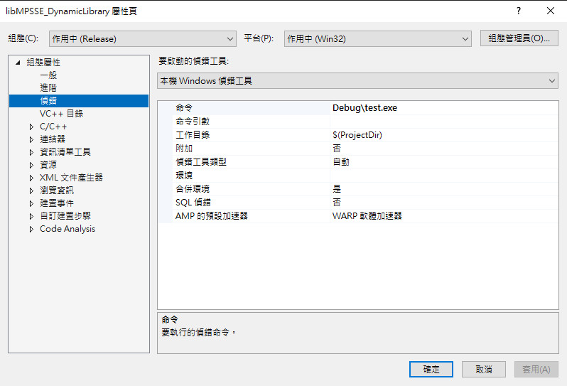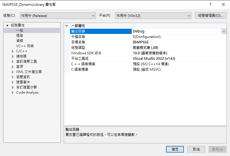 4. 由於原始的專案是使用x86平台編譯,因此,將libMPSSE_DynamicLibrary設定成一樣的平台,方便除錯