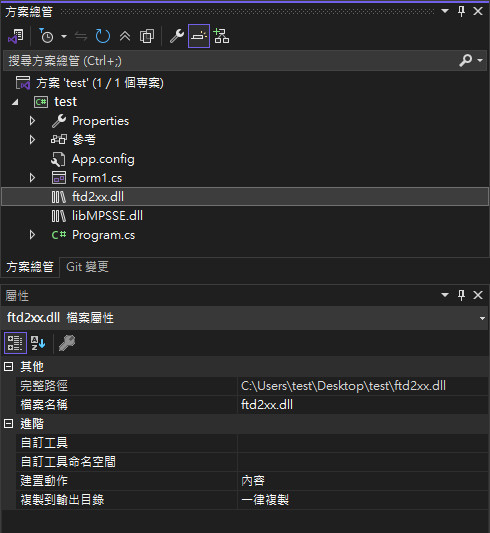 10. 只要將ftd2xx.dll加入專案並且設成一律複製即可解決卡住問題