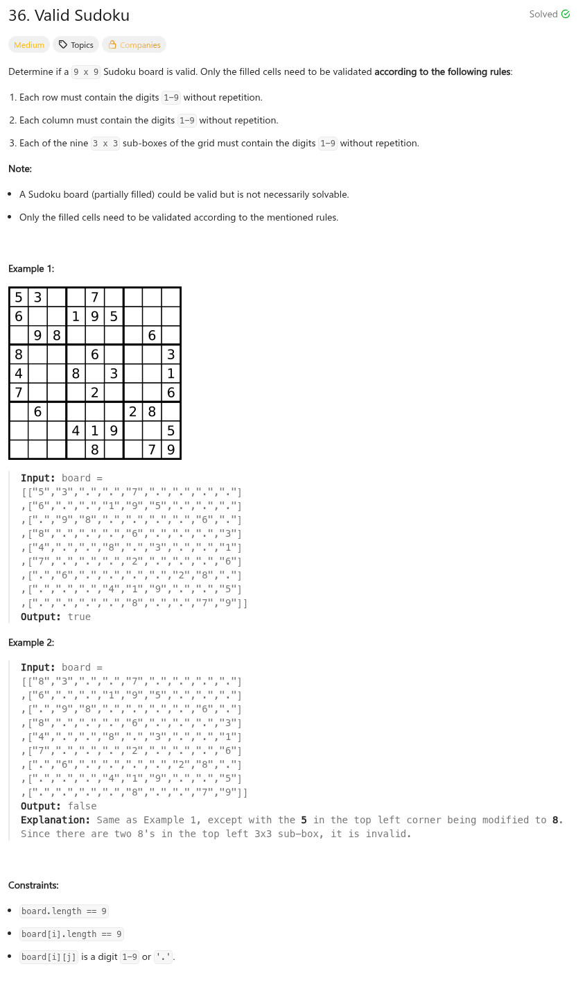 bool isValidSudoku(char** board, int boardSize, int* boardColSize)