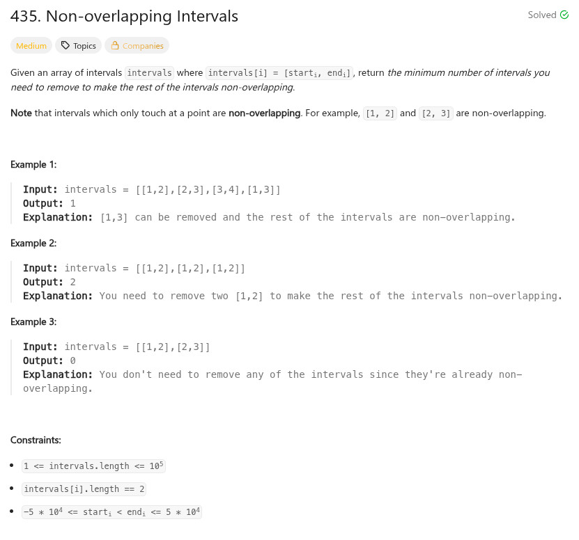 int eraseOverlapIntervals(int** intervals, int intervalsSize, int* intervalsColSize)