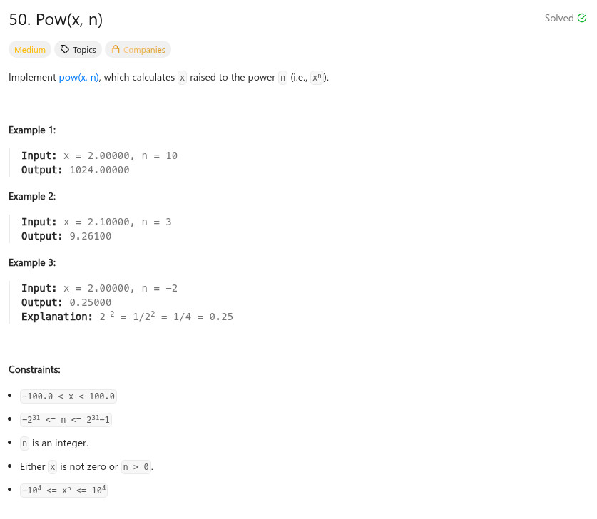 程式語言 - LeetCode - C - 50. Pow(x, n)