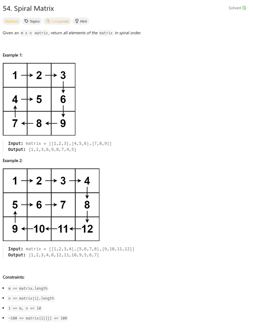 程式語言 - LeetCode - C - 54. Spiral Matrix