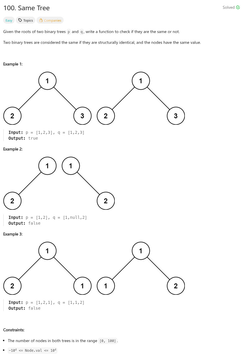 程式語言 - LeetCode - C++ - 100. Same Tree