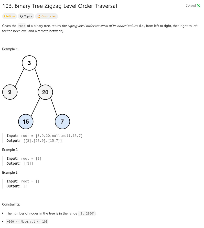 程式語言 - LeetCode - C++ - 103. Binary Tree Zigzag Level Order Traversal