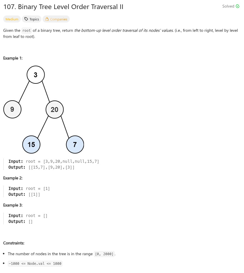 程式語言 - LeetCode - C++ - 107. Binary Tree Level Order Traversal II