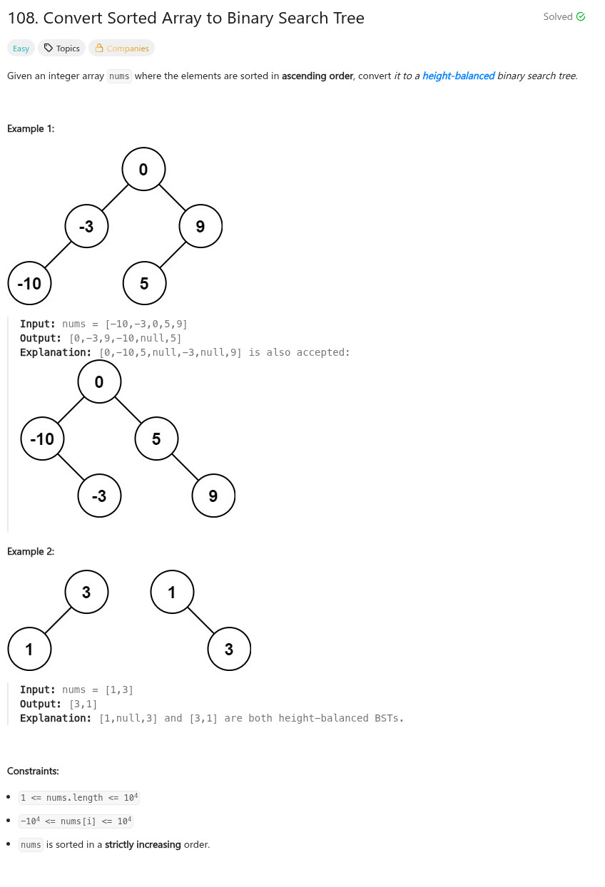 程式語言 - LeetCode - C++ - 108. Convert Sorted Array to Binary Search Tree