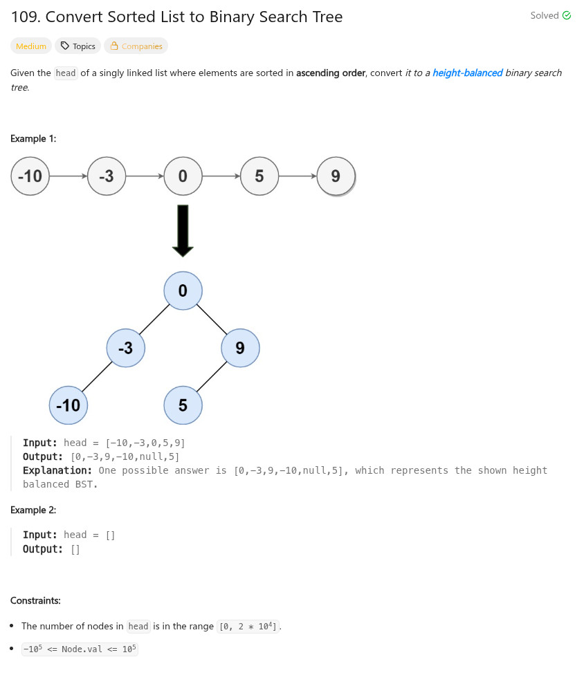程式語言 - LeetCode - C++ - 109. Convert Sorted List to Binary Search Tree