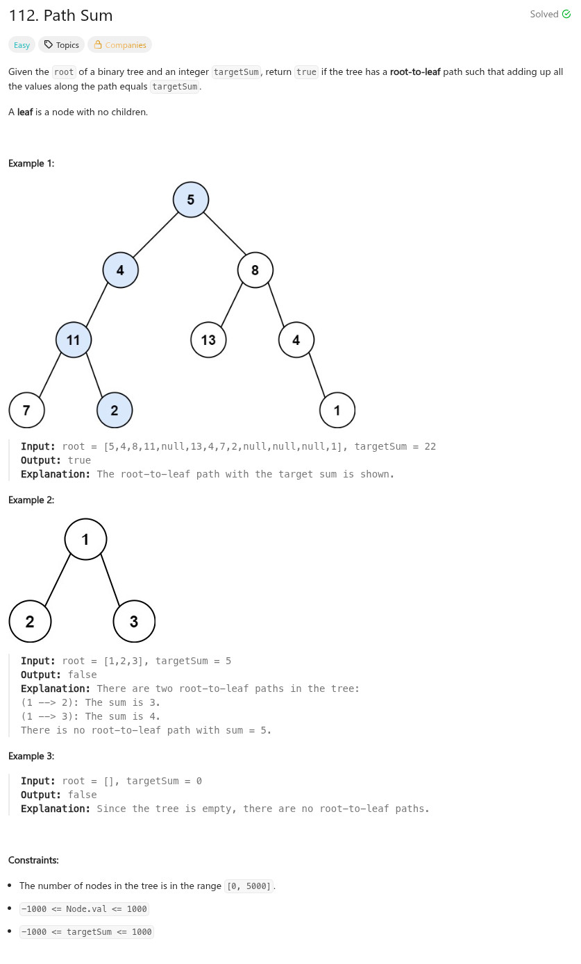 bool hasPathSum(TreeNode* root, int targetSum) {