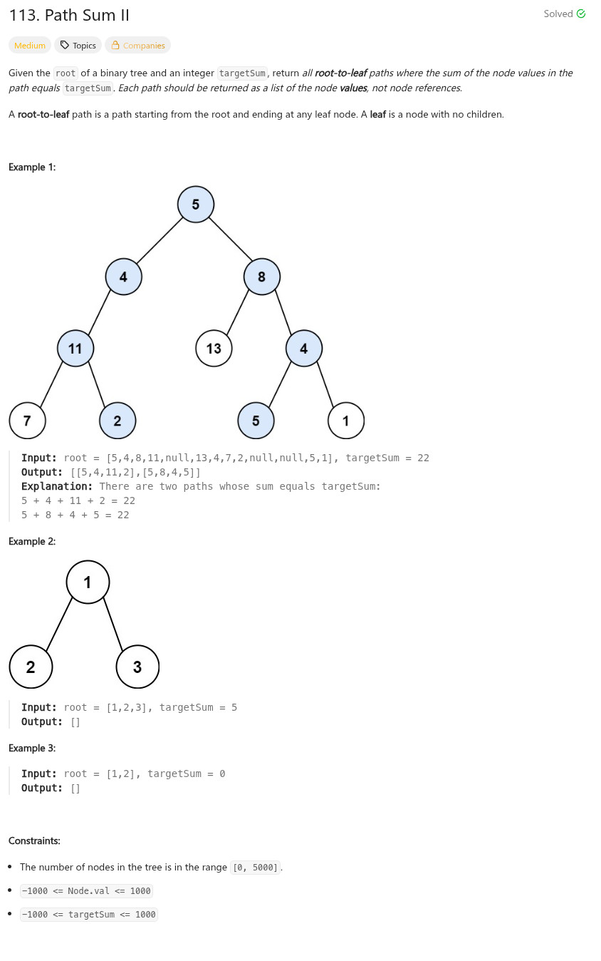 vector<vector<int>> pathSum(TreeNode* root, int targetSum) {