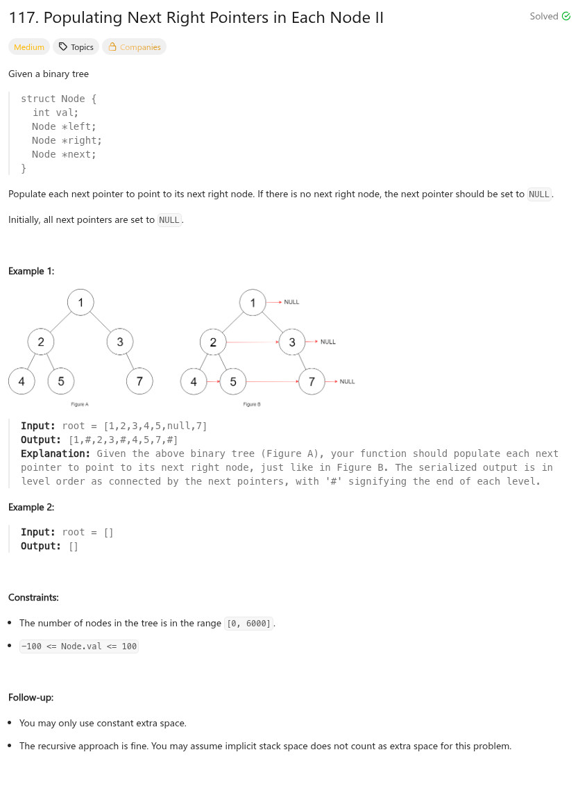 程式語言 - LeetCode - C++ - 117. Populating Next Right Pointers in Each Node II