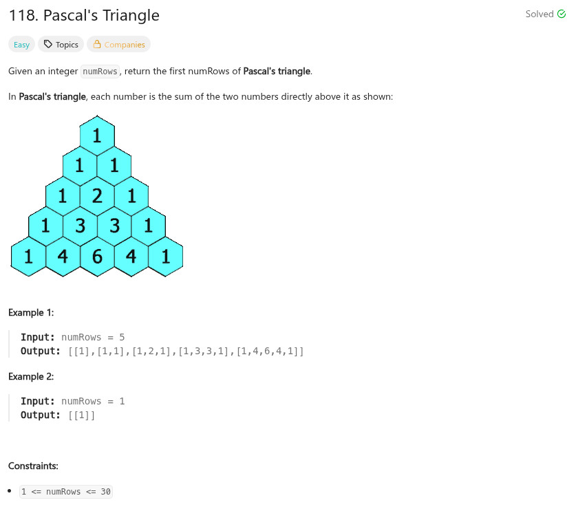程式語言 - LeetCode - C++ - 118. Pascal's Triangle