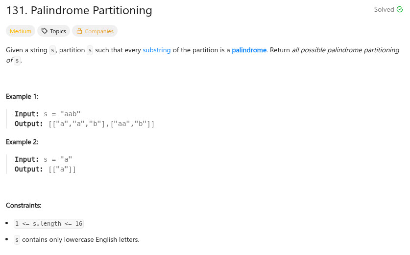 vector<vector<string>> partition(string s) {