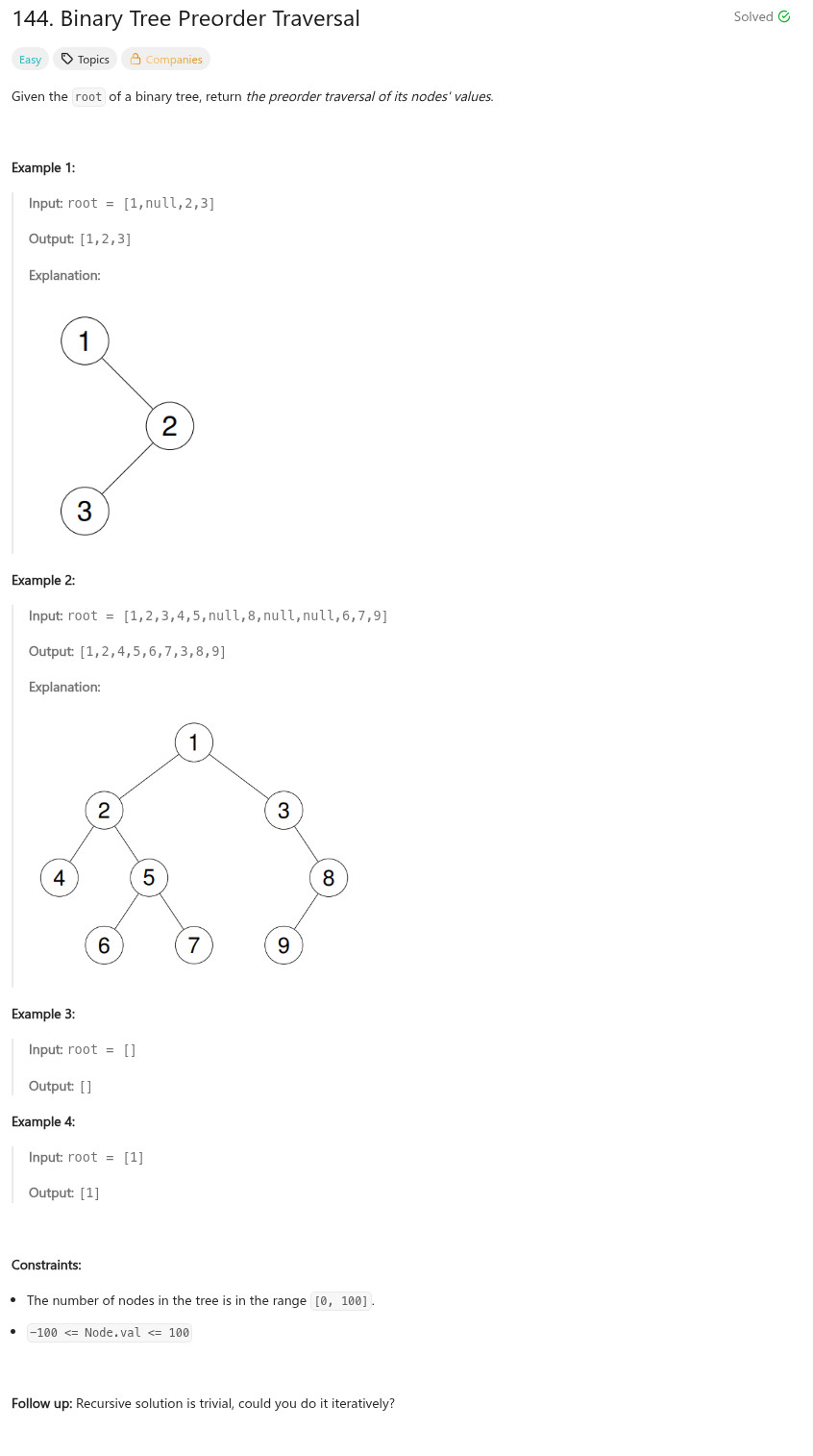 程式語言 - LeetCode - C++ - 144. Binary Tree Preorder Traversal
