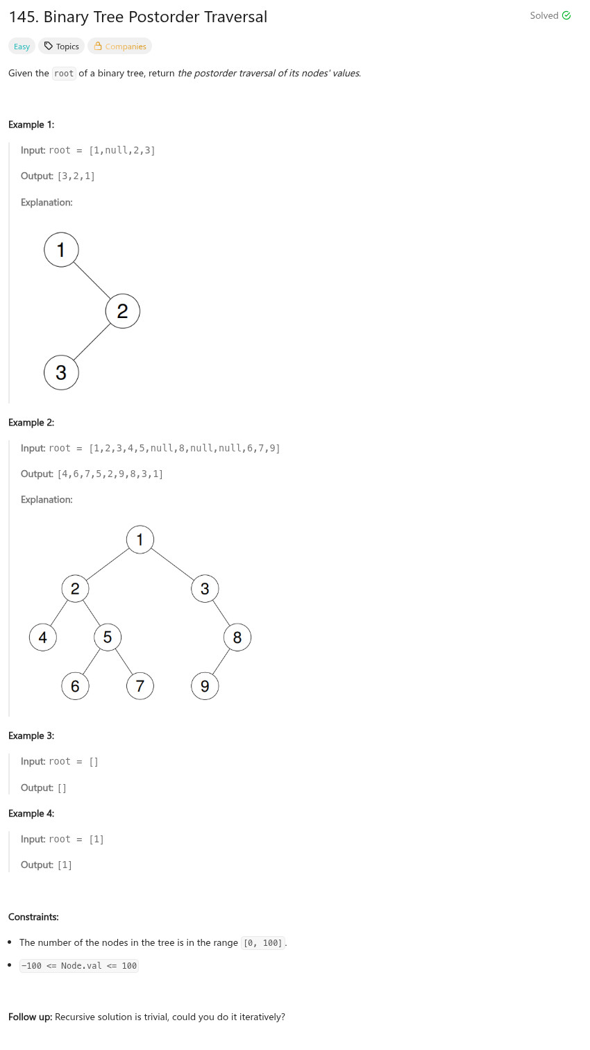 程式語言 - LeetCode - C++ - 145. Binary Tree Postorder Traversal