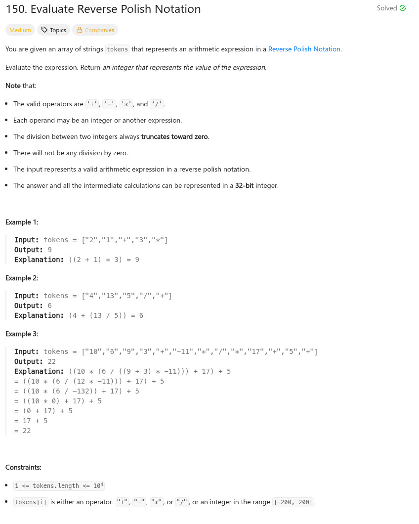 int evalRPN(vector<string>& tokens) {