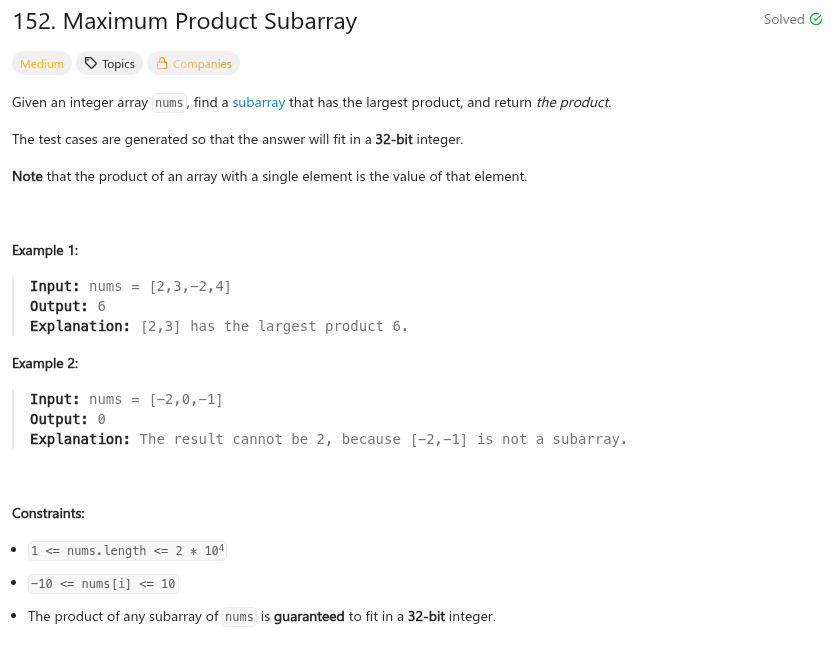 程式語言 - LeetCode - C++ - 152. Maximum Product Subarray