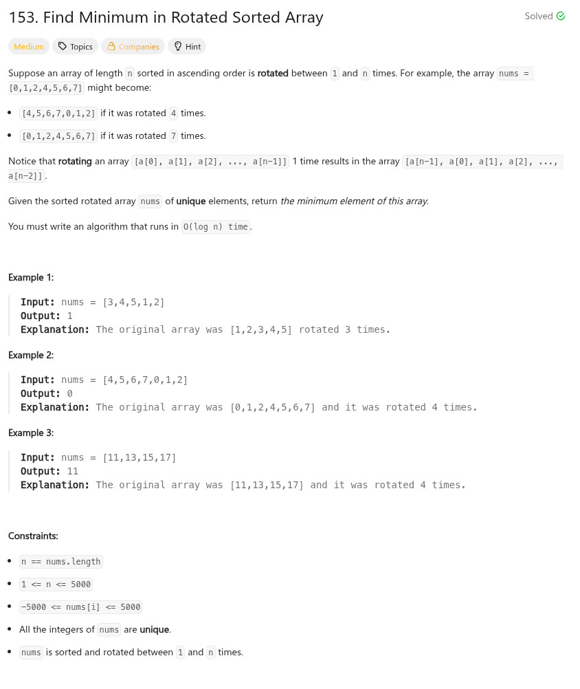 int findMin(vector<int>& nums) {