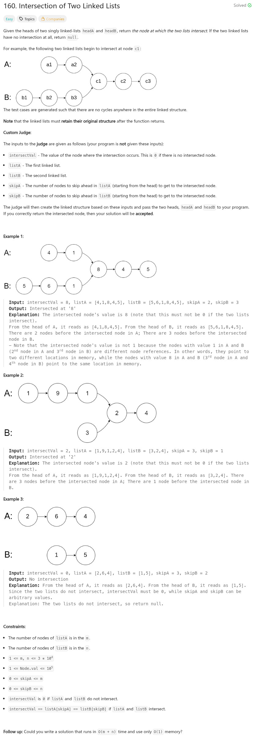 程式語言 - LeetCode - C++ - 160. Intersection of Two Linked Lists