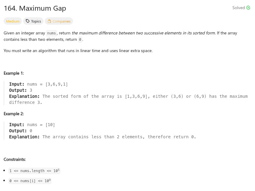 程式語言 - LeetCode - C++ - 164. Maximum Gap