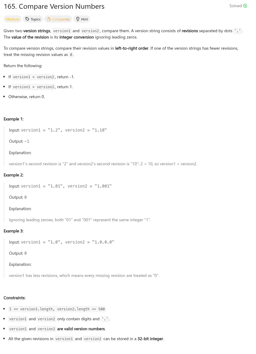 程式語言 - LeetCode - C++ - 165. Compare Version Numbers