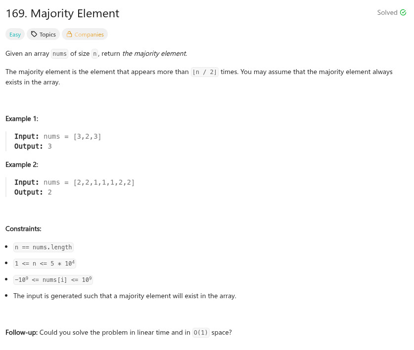 程式語言 - LeetCode - C++ - 169. Majority Element