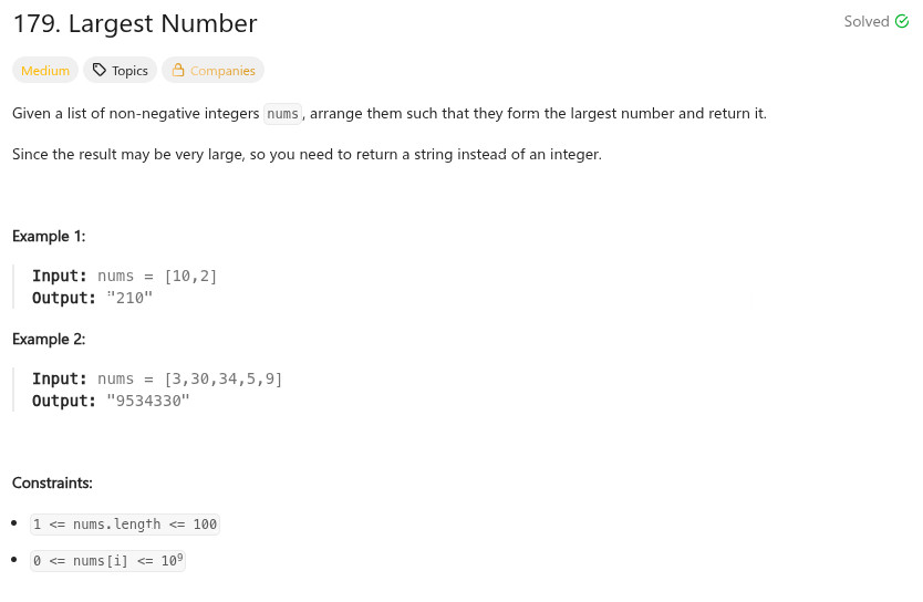 程式語言 - LeetCode - C++ - 179. Largest Number