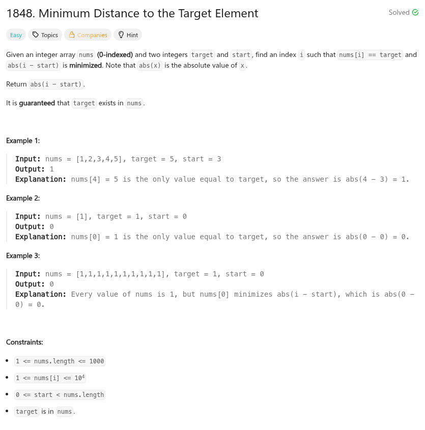 程式語言 - LeetCode - C++ - 1848. Minimum Distance to the Target Element