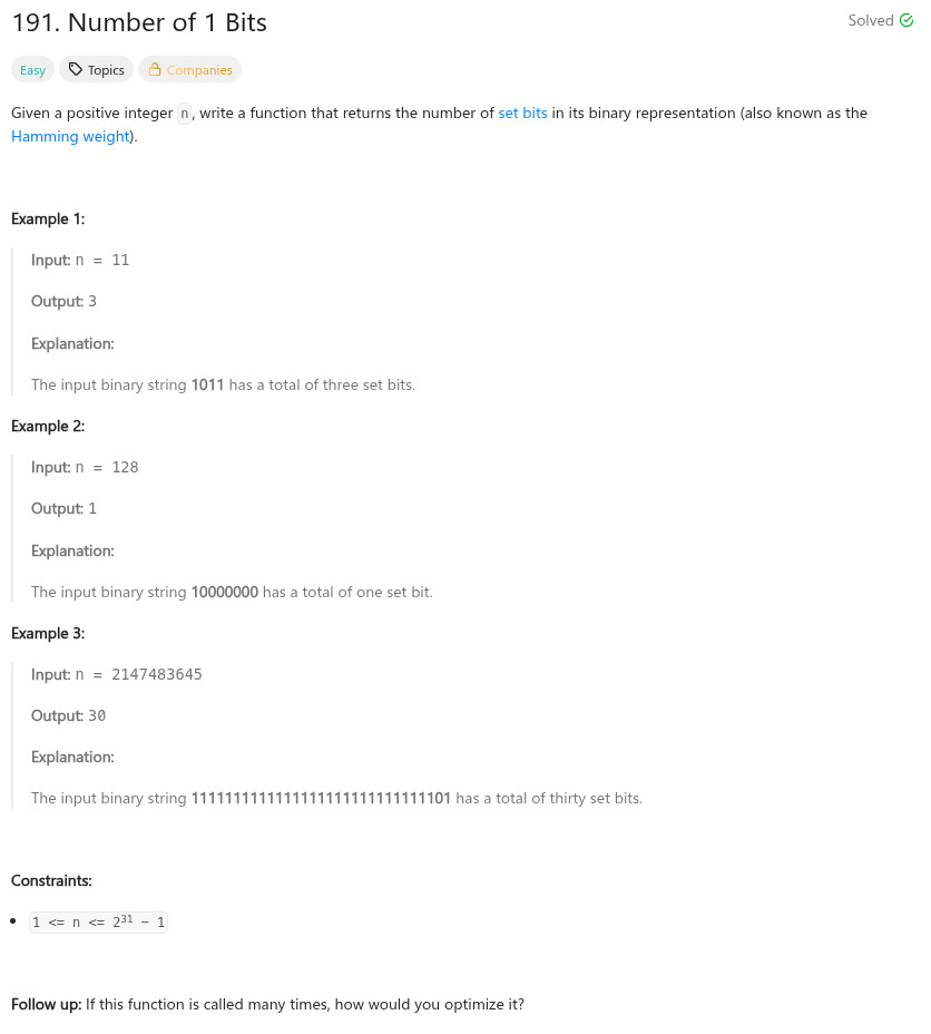 程式語言 - LeetCode - C++ - 191. Number of 1 Bits