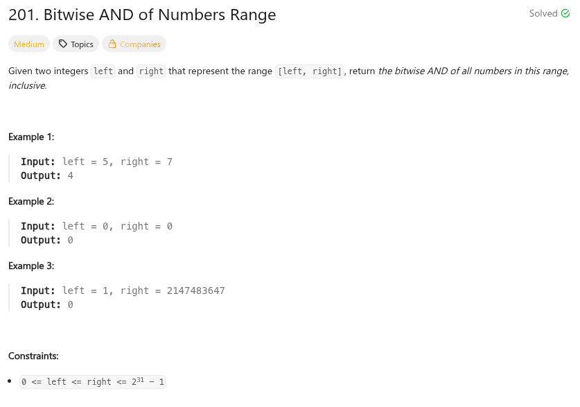 程式語言 - LeetCode - C++ - 201. Bitwise AND of Numbers Range