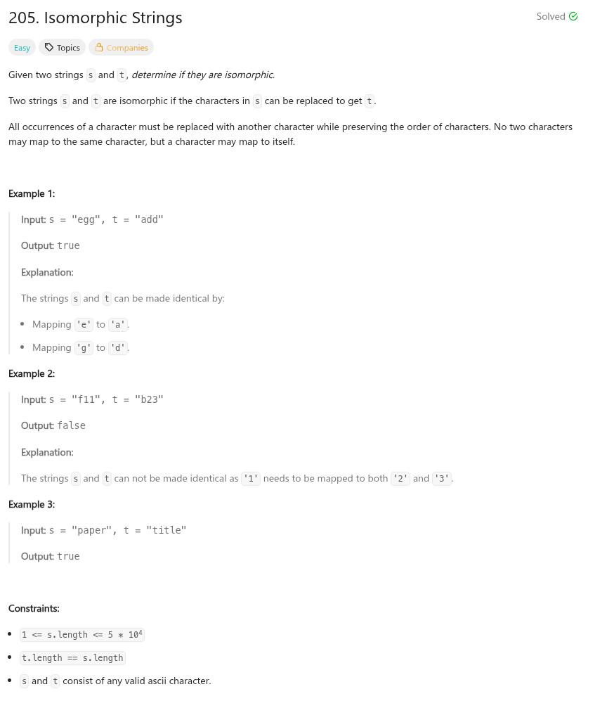 程式語言 - LeetCode - C++ - 205. Isomorphic Strings
