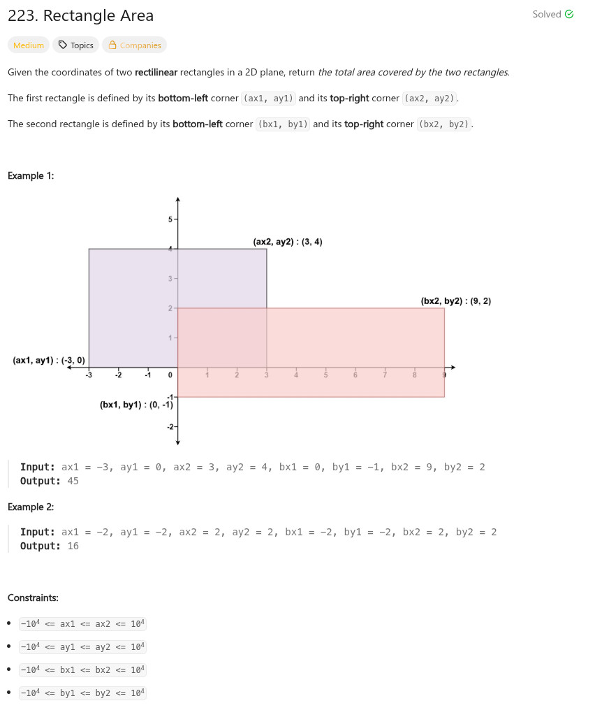 程式語言 - LeetCode - C++ - 223. Rectangle Area