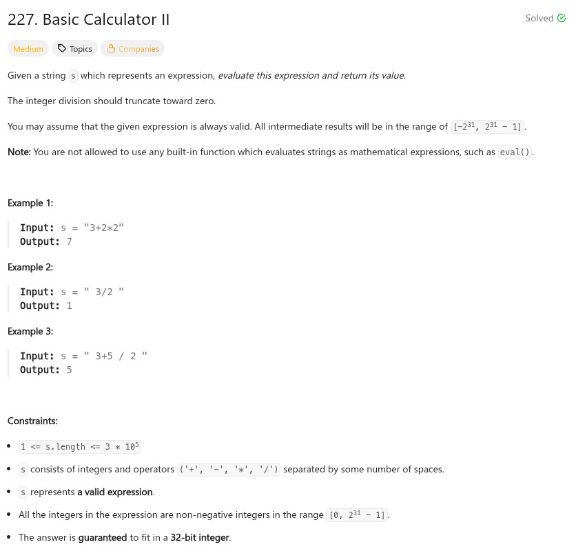 程式語言 - LeetCode - C++ - 227. Basic Calculator II