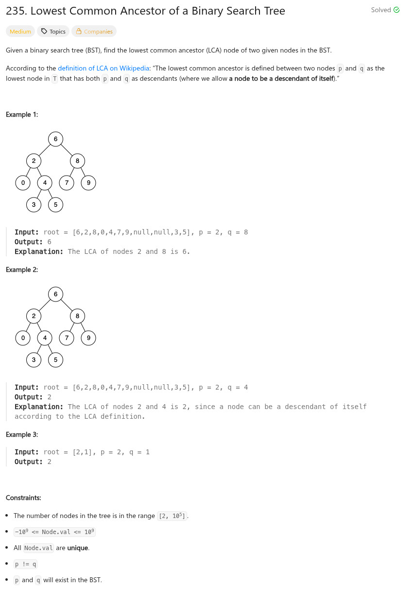 程式語言 - LeetCode - C++ - 235. Lowest Common Ancestor of a Binary Search Tree