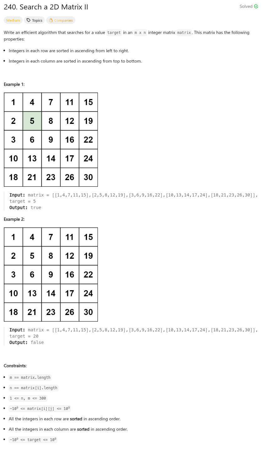 程式語言 - LeetCode - CPP - 240. Search a 2D Matrix II