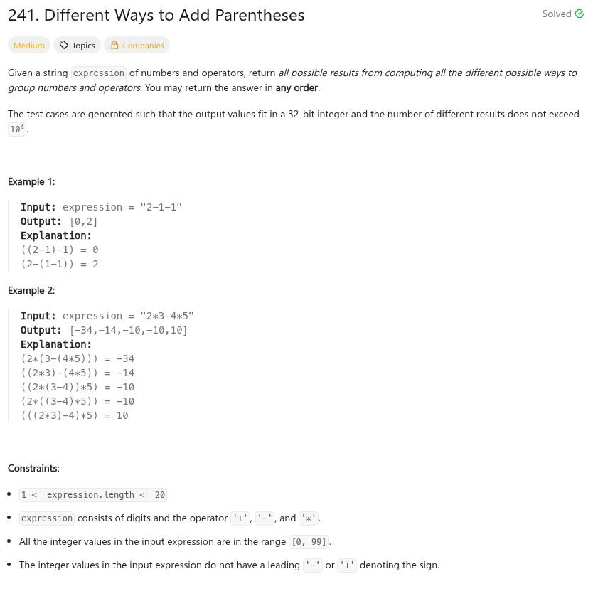 程式語言 - LeetCode - CPP - 241. Different Ways to Add Parentheses