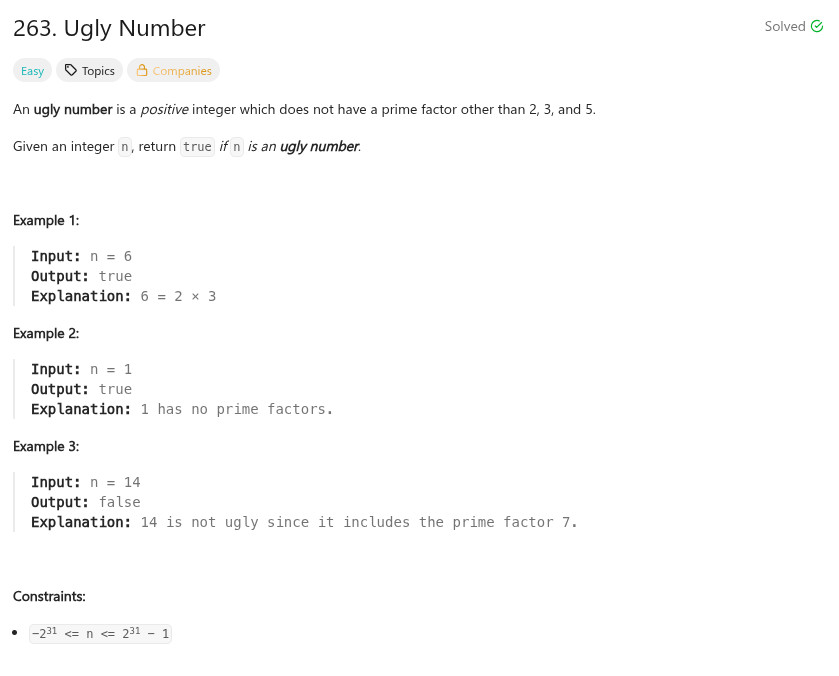 程式語言 - LeetCode - CPP - 263. Ugly Number