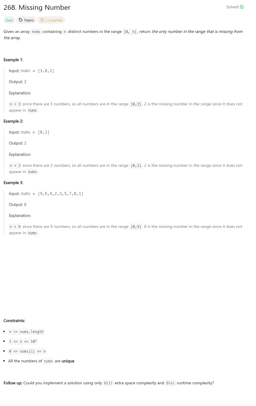 int missingNumber(vector<int>& nums) {